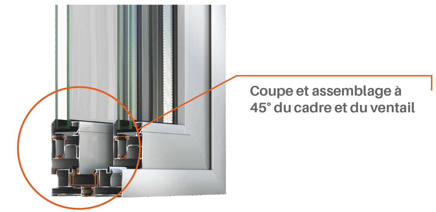 Un assemblage à 45° est caractéristique d’un assemblage de qualité, contrairement à un assemblage droit à chevauchement.