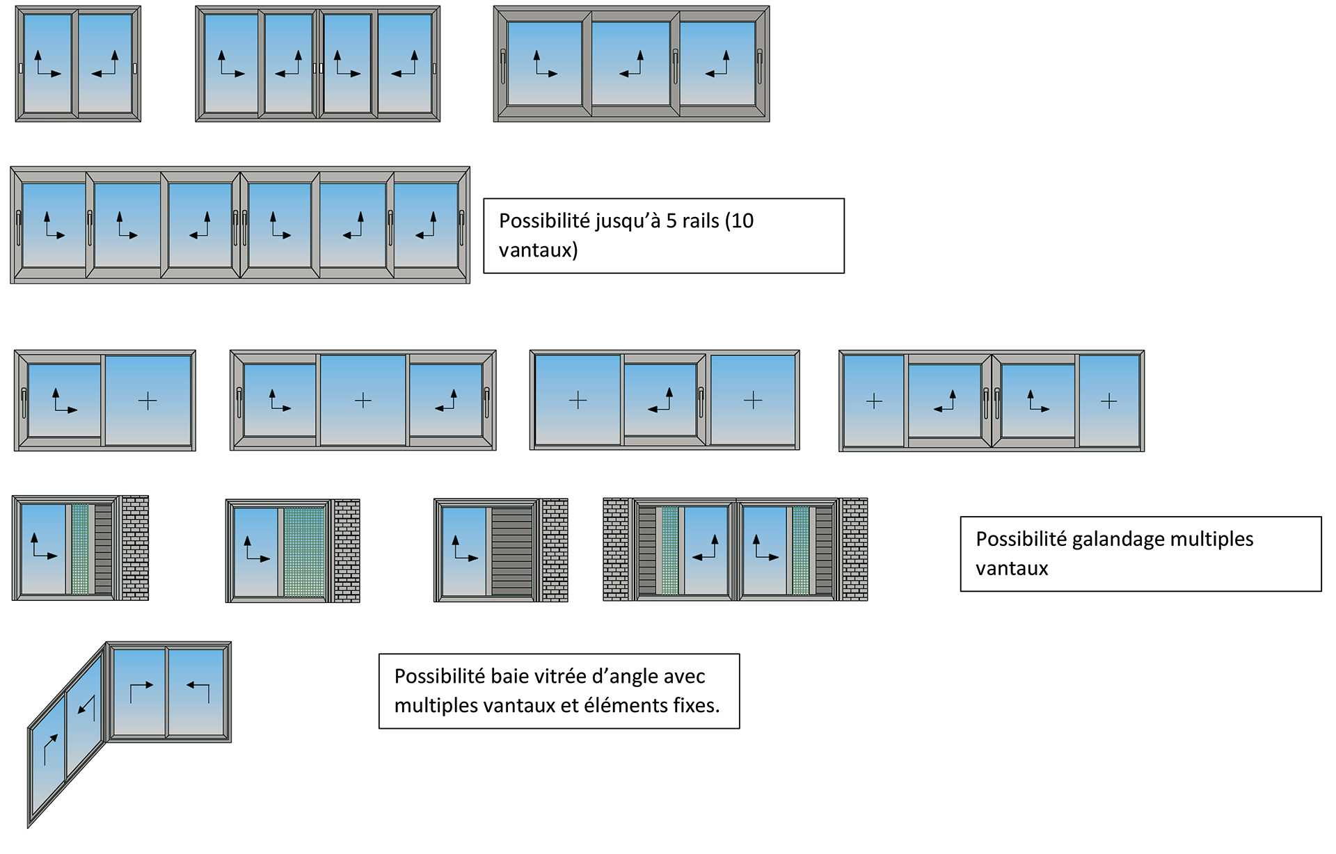 La gamme S560 permet la réalisation de baies coulissantes d’angle et des baies jusqu’à 5 rails.