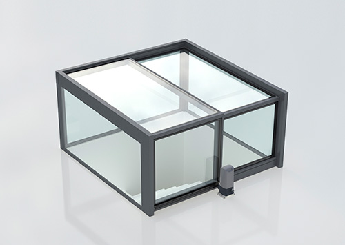 Le toit électrique FOS permet une translation latérale des panneaux vitrés. Il dispose de structure métallique interne pour assurer une grande rigidité et la réalisation de grandes surfaces.