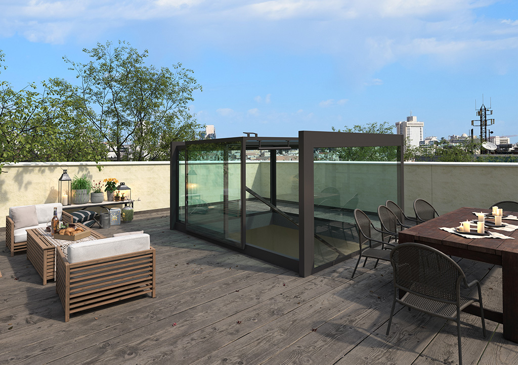 Le toit électrique BOX permet un accès facile aux toits terrasse tout en optimisant l’espace utilisé. Son design sobre et moderne s’intègre parfaitement sur les toits d’immeuble ou d’habitation de particuliers.