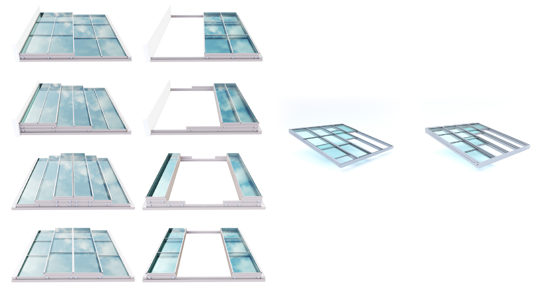 Le toit électrique TSR est constitué de traverses en aluminium à rupture de pont thermique. Il dispose de structure métallique interne pour assurer une grande rigidité et la réalisation de grandes surfaces.